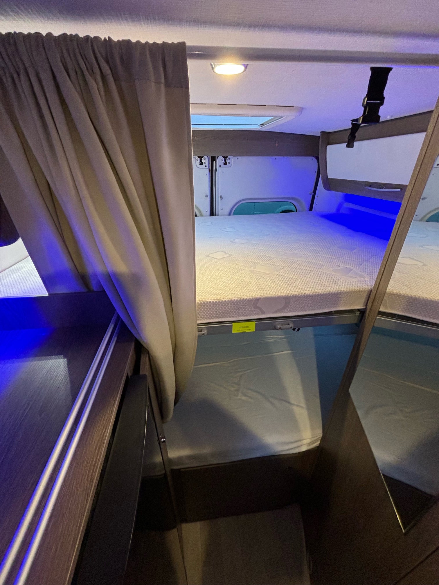 Lits superposés avec lit dinette, parfait pour vos voyages en familles.